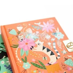 Découvrez ce journal intime de 14 x 10,5 cm à la couverture colorée sur le thème « Chats et fleurs » vendu avec sa petite planche de stickers assortis.