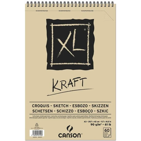 CANSON – Bloc à croquis et études XL – A3 – 90 g./m² – Kraft