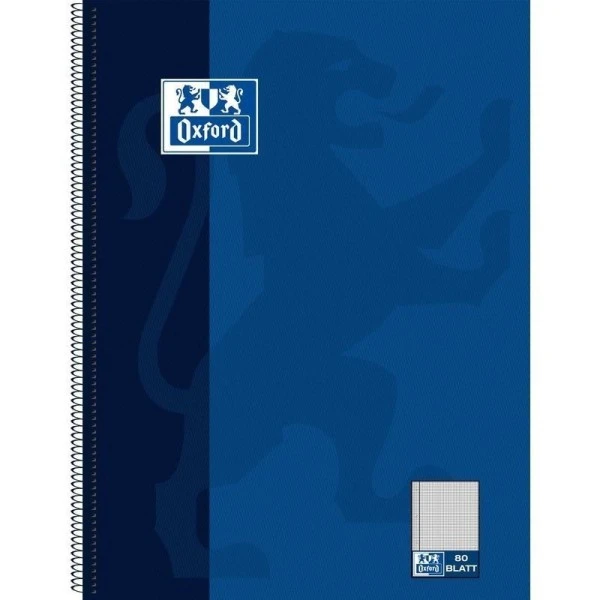 Description de Cahier à spirales A4+, 5×5+marge, 160 pages – Bleu foncé – Oxford