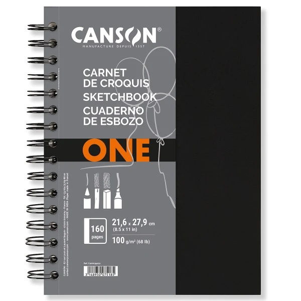 Description de Canson Art Book One Carnet spiralé Papier à dessin 80 feuilles 100g 21,6 x 27,9 cm Blanc