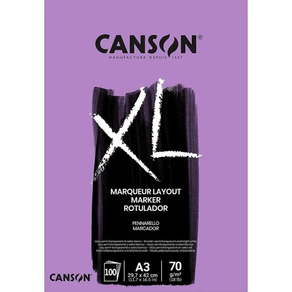 CANSON – Bloc croquis et études “XL Marker”, A3, 70 g/m² – Blanc