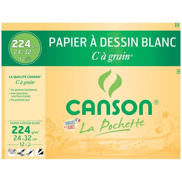 Description de CANSON Papier à dessin C à grain 320 x 240 mm 224 g/m2