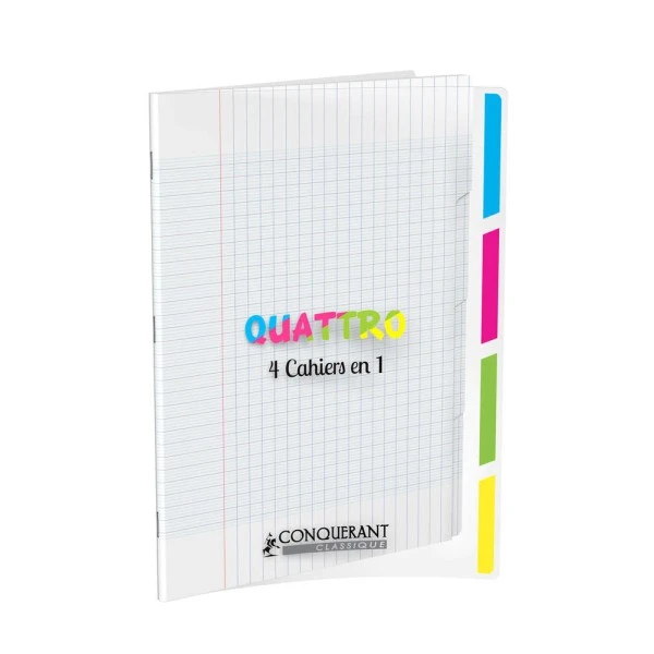 CONQUERANT CLASSIQUE – Cahier 24×32 – 140 pages – 4 en 1 – Séyès – Polypro incolore