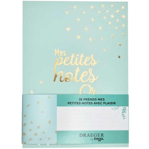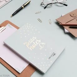 Ce bloc note Mes petites notes en or de Toga au format de 13 x 18 cm est composĂ© de 100 pages de papier blanc lignĂ©. Les pages lignĂ©es seront parfaites pour prendre des notes et son petit format vous permettra d’emporter votre carnet partout.
