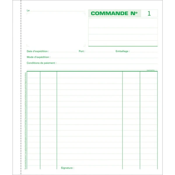 Ce carnet permet de noter et d’enregistrer les commandes.