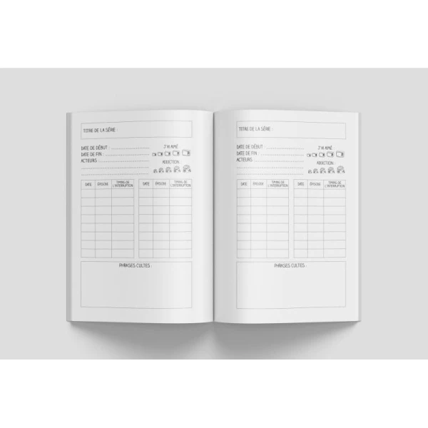 Ce carnet vous permettra d’indiquer une mine d’informations sur les séries visionnées. La saison, l’épisode, l’addiction… Pour ne plus rien oublier.